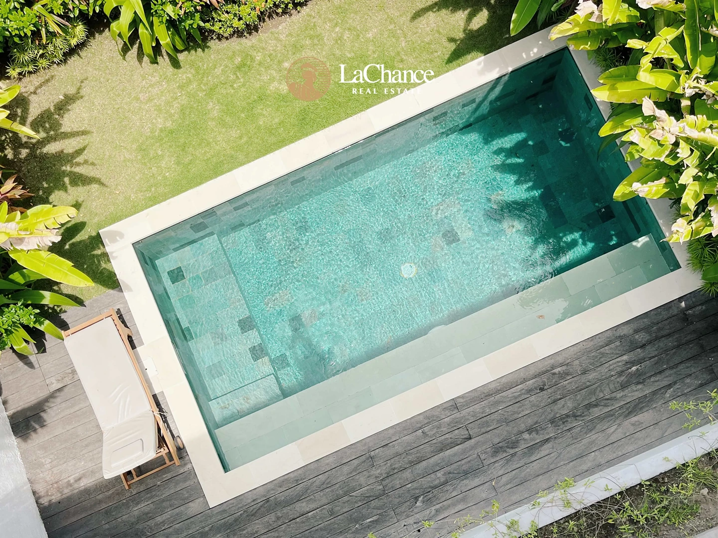 The outdoor area is equally charming, with a well-balanced combination of tropical plants and real grass — something increasingly rare to find in Bali today. The swimming pool blends perfectly with the greenery, creating a private and relaxing oasis.