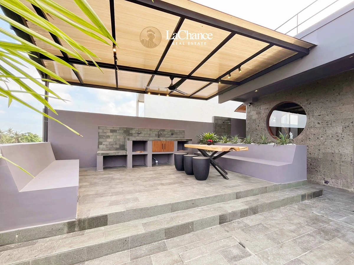 Spanning an impressive 700 square meters, the property features an expansive open-plan living area seamlessly connected to the outdoor pool, as well as a second-floor terrace perfect for relaxing or entertaining. Staff bedroom and bathroom, plus the oversized parking area accommodates multiple cars and scooters with ease—are exceptional features in this area.
