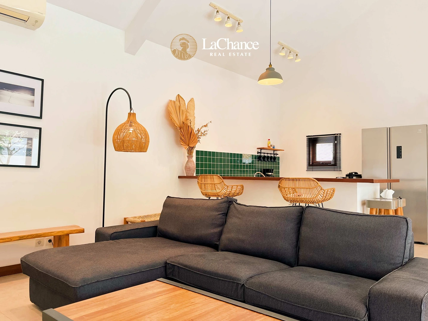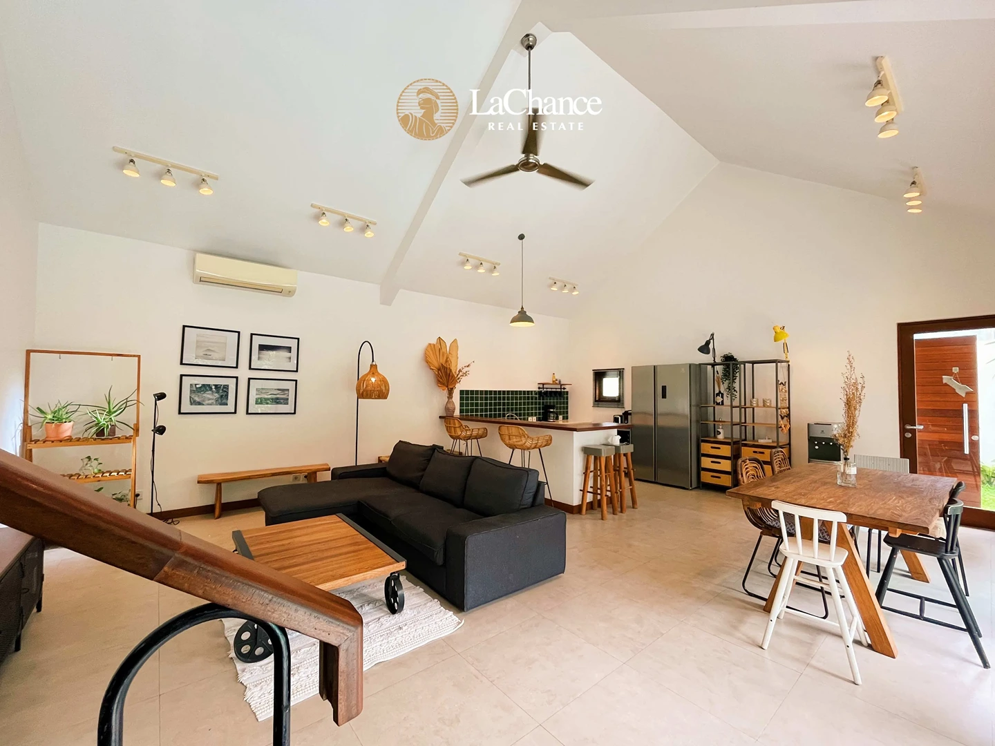 Inside, the villa offers a spacious fully enclosed and air-conditioned living area, seamlessly connected to a modern equipped kitchen — perfect for families, entertaining or enjoying comfort during rainy days. The layout combines practicality and warmth, making it highly suitable for everyday living.